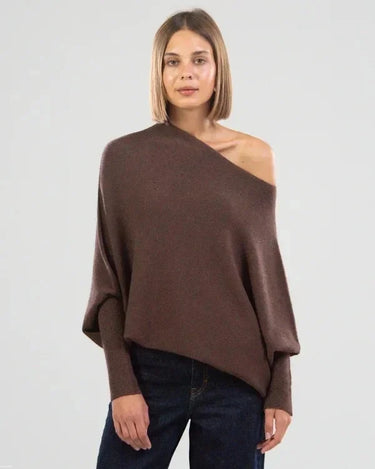 Pull élégant asymétrique au drapé sophistiqué et stylé